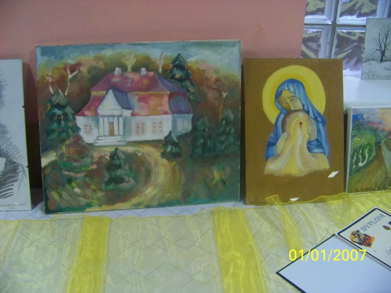 wiersze ale też pięknie maluje. Jej prace mogli podziwiać zaproszeni goście i mieszkańcy przybyli na spotkanie. Uroczystość odbyła się w kameralnych warunkach przy kawie i ciastku.