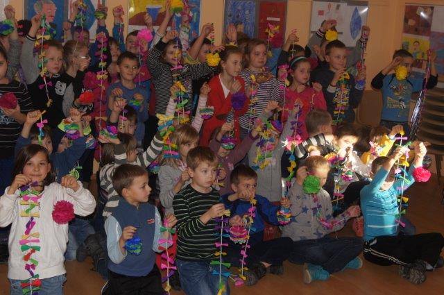 okazję wykonać różnego rodzaju ozdoby z krepy, bibuły i papieru kolorowego. Ponadto młodzież zwiedziła bibliotekę i miała możliwość zapoznania się z księgozbiorem placówki.