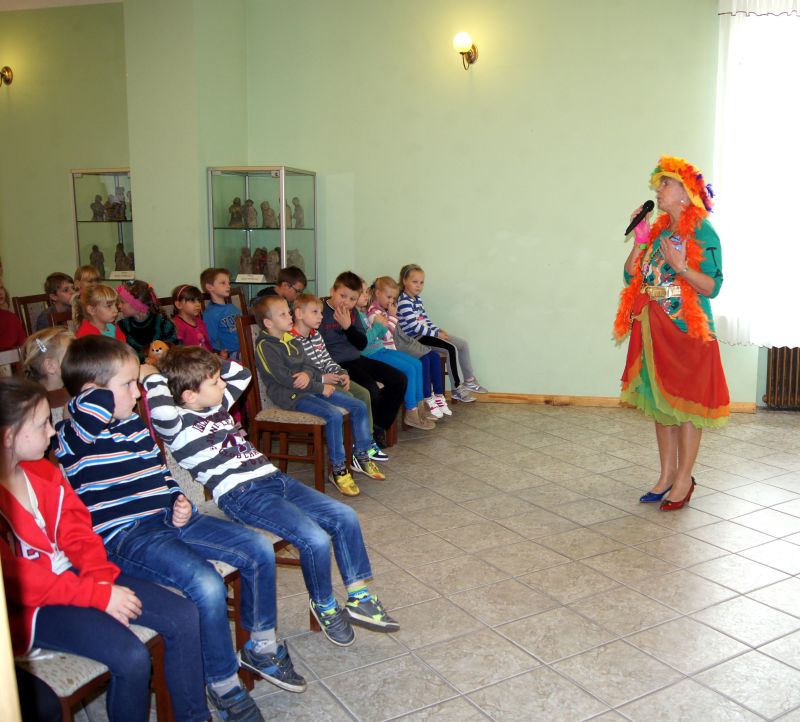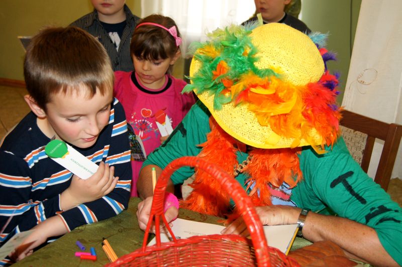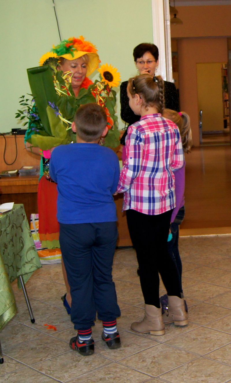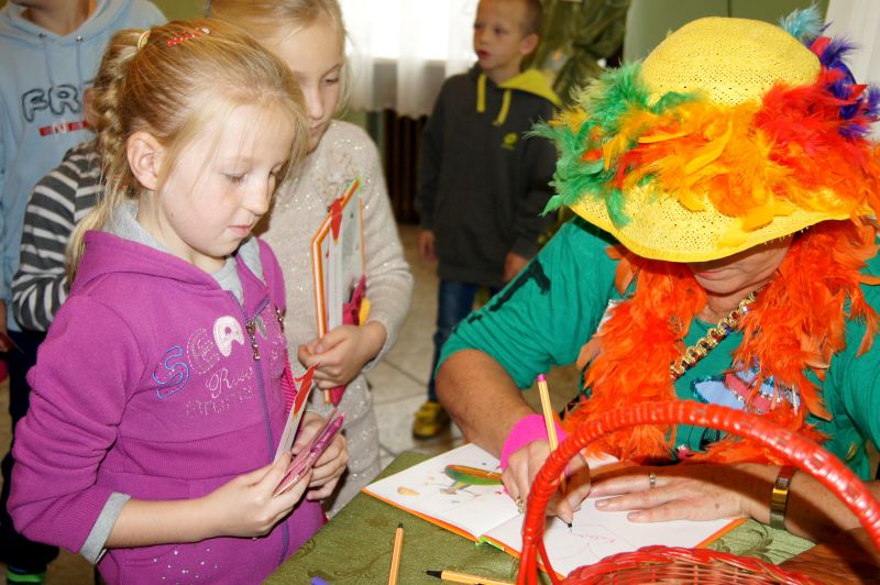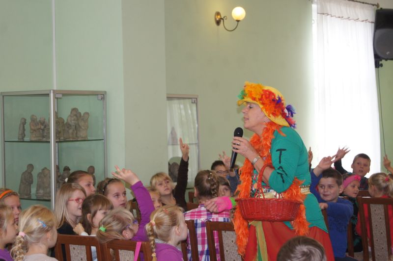 Grabowskim założyła w 1983 roku dziecięcy zespół "Fasolki". Inne programy, z którymi jest związana Pani Ewa to "Budzik" i "Jedyneczka". Zdolności tworzenia dla najmłodszych odziedziczyła po swojej mamie Wandzie Chotomskiej. Ewa Chotomska na spotkaniu w Bibliotece była bardzo aktywna. Wspólnie z dziećmi śpiewała piosenki, tańczyła, zadawała zagadki. Opowiadała o swoich książkach, o zwierzętach, które
