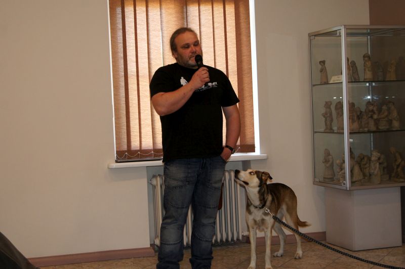Na spotkanie Pan Krzysztof przyjechał z psem Henią – liderką psich zaprzęgów.