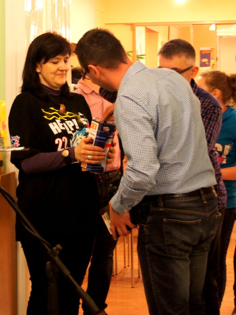 następnie rozlosował ją pośród wolontariuszy.