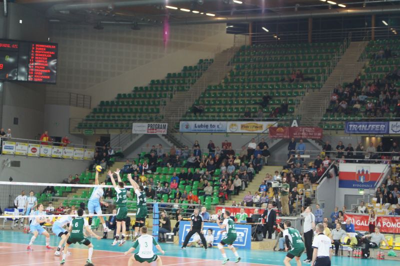 zawodnicy Indykpolu AZS Olsztyn. Siatkarze Transferu ku uciesze zgromadzonych kibiców zwyciężyli 3:1 i przedłuzyli tym samym szanse na występ w fazie play-off. Niezmiernie nam miło, że w organizację