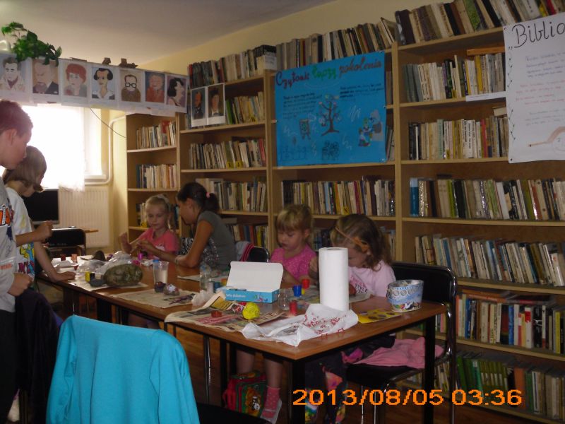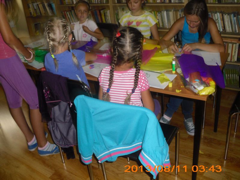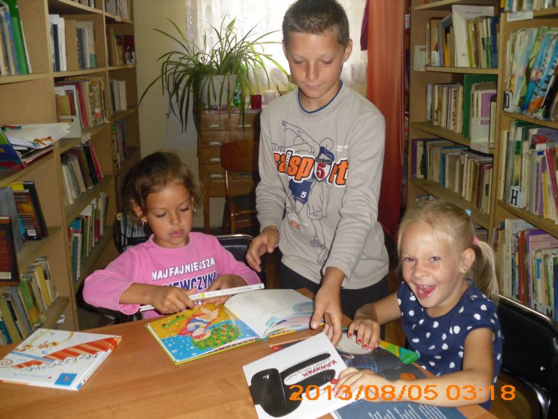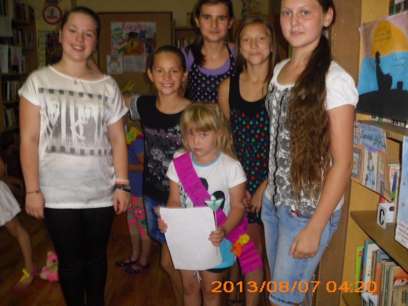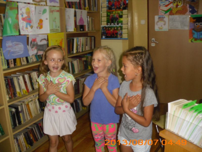 W filii Bibliotecznej Chwaliszewo zakończyły się dwutygodniowe zajęcia wakacyjne dla dzieci. Odpoczywając w bibliotece od upałów,dzieci wypełniły swój wolny czas przyjemną i wesołą zabawą.Jak na bibliotekę przystało było głośne czytanie wybranych baśni i bajek, był także teatrzyk, zagadki oraz gry. Każde dziecko mogło wykazać się