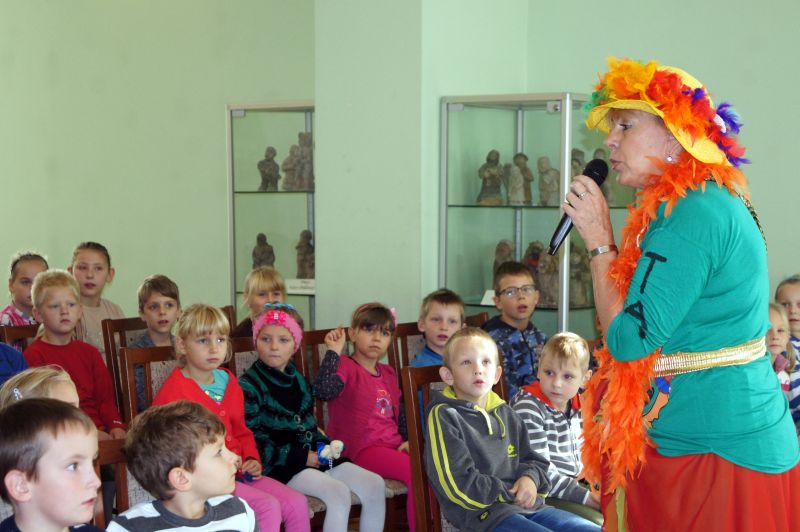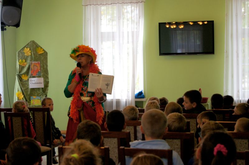Grabowskim założyła w 1983 roku dziecięcy zespół "Fasolki". Inne programy, z którymi jest związana Pani Ewa to "Budzik" i "Jedyneczka". Zdolności tworzenia dla najmłodszych odziedziczyła po swojej mamie Wandzie Chotomskiej. Ewa Chotomska na spotkaniu w Bibliotece była bardzo aktywna. Wspólnie z dziećmi śpiewała piosenki, tańczyła, zadawała zagadki. Opowiadała o swoich książkach, o zwierzętach, które