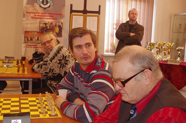 Scenariusz takich zawodów jest zwykle podobny, pierwsze rundy przebiegają pod dyktando faworytów, którzy z kwitkiem odsyłają tych mniej doświadczonych zawodników. Tak też było i w Kcyni, jednak szachy potrafią zaskakiwać niczym Tomasz Jacyków nowymi ciuchami. Zdarzyło się kilka niespodzianek, bowiem szachiści też mają lepsze i gorsze dni. Do takowych można zaliczyć dwie porażki mistrza międzynarodowego Krzysztofa Żołnierowicza z Przemysławem Szmidtem oraz Mariuszem Darowickim (do niedawna koledzy klubowi z Gambitu Świecie), co ostatecznie kosztowało go 4 miejsce. Poza zasięgiem tego dnia był Karol Jaroch z Fali Świekatowo, który tylko dwa razy zanotował „przyjacielskie remisy”, a pozostałe partie wygrał.