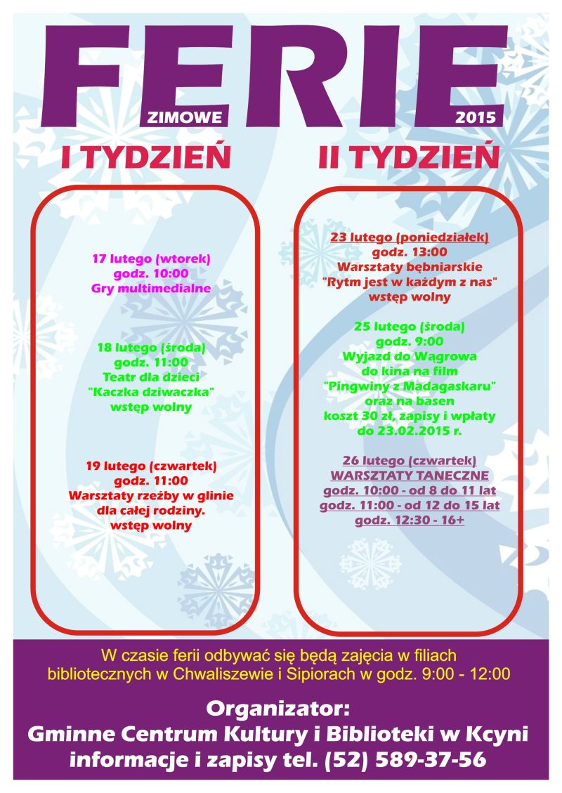 Gminne Centrum Kultury i Biblioteki im. Klary Prillowej w Kcyni informuje, że w dniu 8.01.2015 r. o godzinie 15:30 w siedzibie GCKiB odbędzie się spotkanie organizacyjne wolontariuszy 23 Finału WOŚP.